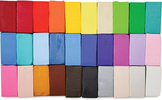 - Ideal DIY gift for everyone from kids to artists! - Includes 30 vibrant 1 oz. bars of clay: Black, Emerald, Violet, Yellow, Teal Pearl, Leaf Green, Red Hot Red, Just Orange, Ballerina, Lt. Blue Pearl, Translucent, Sweet Potato, Blue, Deep Red Pearl, Pearl, Spring Lilac, Suede Brown, Granny Smith, Gold, Lemonade, Navy Pearl, Hot Pink, Chocolate, Beige, Turquoise, Leaf Green, Sky Blue, Silver, Red, White