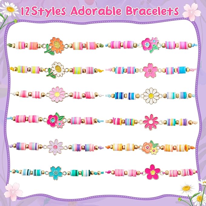 - Cute Original Flower Bracelets: 12 uniquely designed little girls kids play jewelry, including includes 12 delicate bracelets with 12 different flower charms, each of which is carefully designed and full of childlike fun. Ideal for children ages 3-12, these toddler bracelet are delightful birthday gifts or party favors