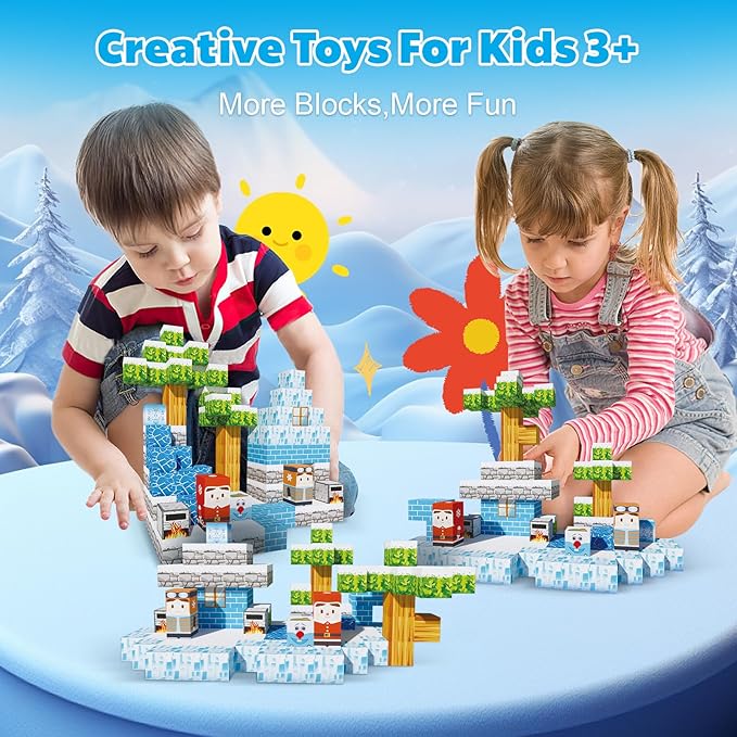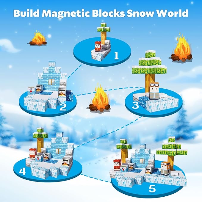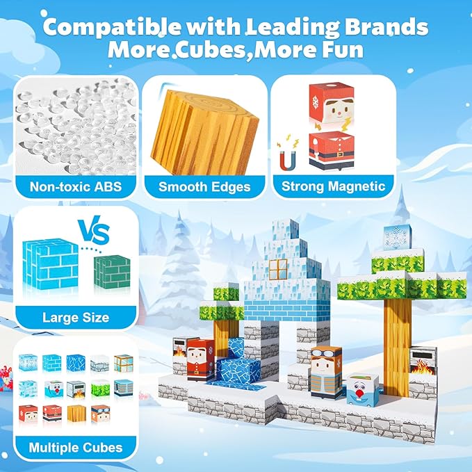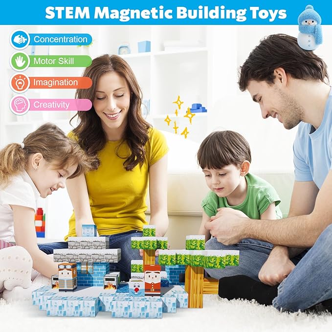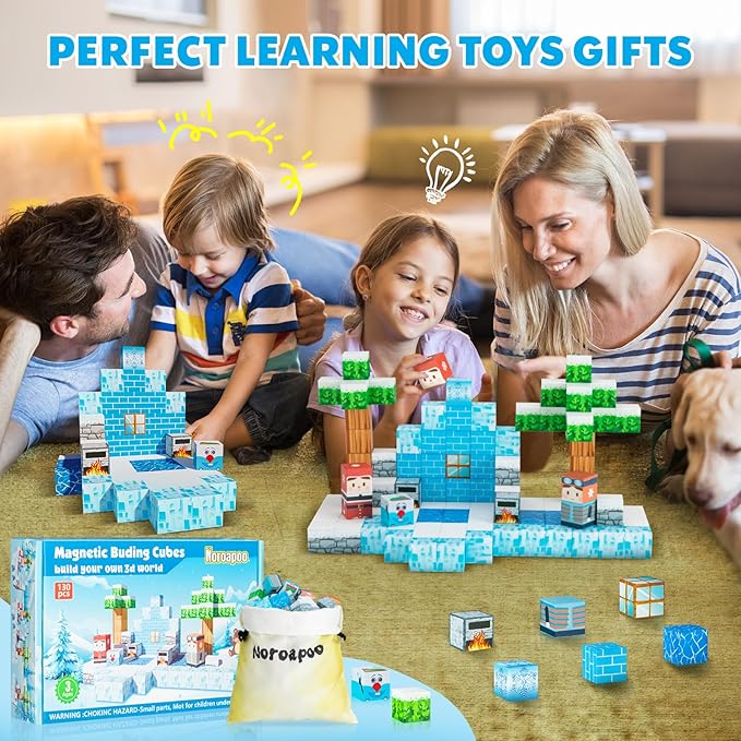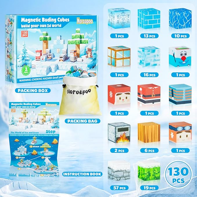 - 【Exciting Frozen Magnet 3D World】Embark on thrilling quests with our 130 pieces Magnetic Building Block Set and experience an exciting portal adventure!Kids can build their own 3D magnet world with using these variety envouriments such as snowman ,ice cube,trees and others.From simple to challenging builds,experience the fun of role-playing.Our magnetic open-ended toys set lets kids play with their imagination!