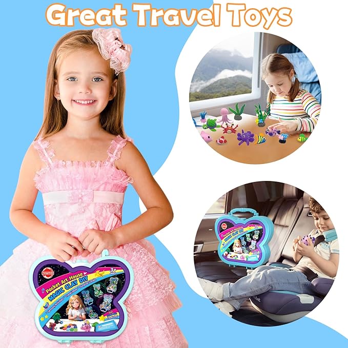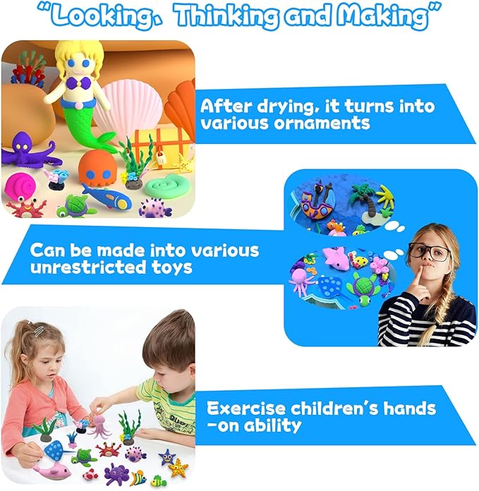 - Clay Craft Kit for Kids: 12 ocean-themed colours can playing around with the colors however you use. DIY crafts air-dry magic clay for kid's,making various marine creatures and landscapes. as shark,fish,turtle,seaweed! When done, can display diy clay ocean theme on the included butterfly box .