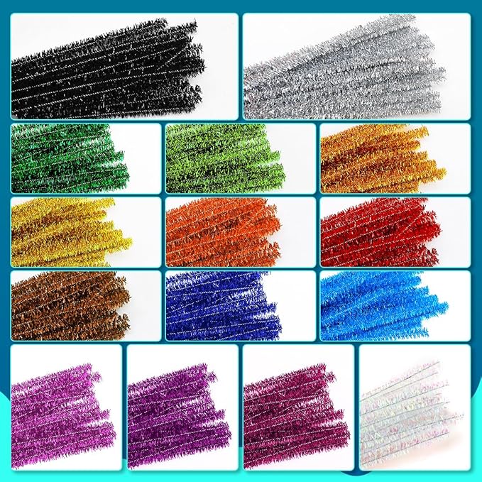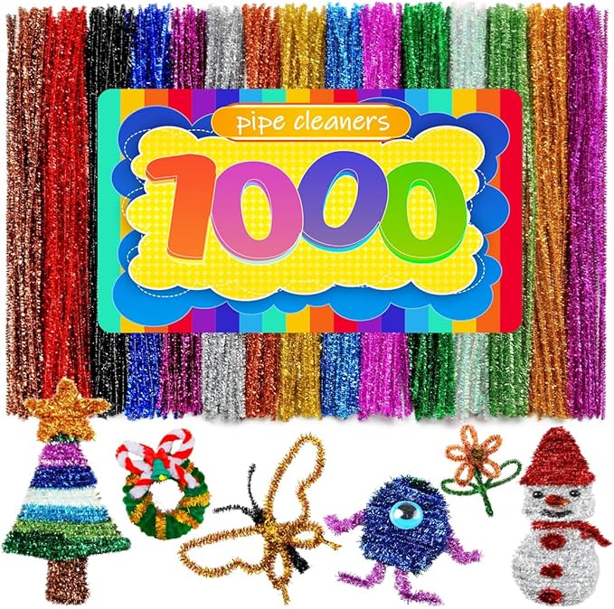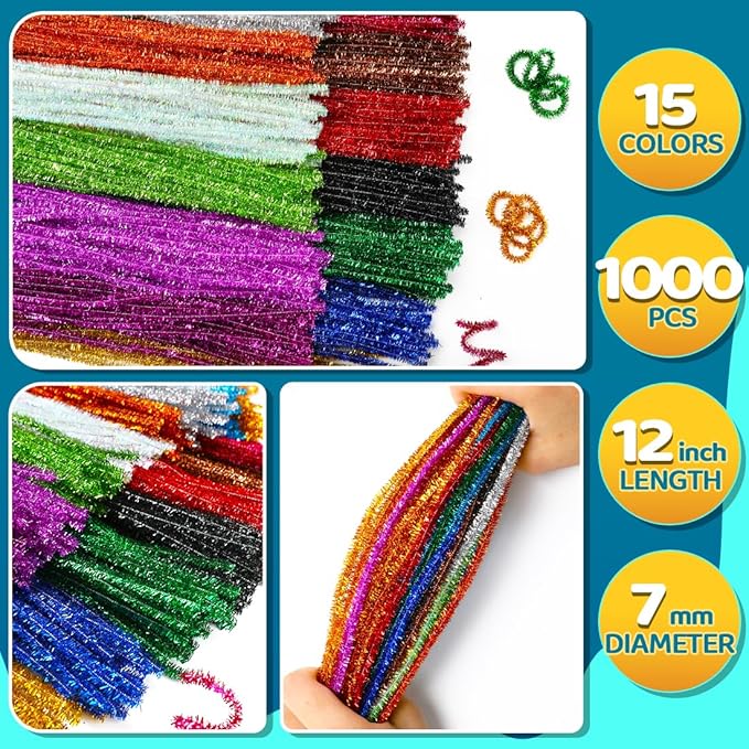 1000pcs Pipe Cleaners, Pipe Cleaners for Crafts, Craft Supplies Multicolor Chenille Stems for Art&Craft Christmas DIY Projects(15colors,Glitter)