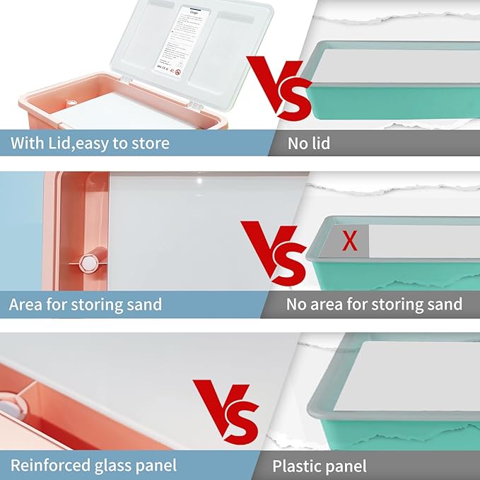 - 🌺 𝐔𝐩𝐠𝐫𝐚𝐝𝐞𝐝 𝐃𝐞𝐬𝐢𝐠𝐧:Our sand art box comes with a lid that prevents sand spills for easy storage and organization.The light Table has two sand storage spaces and comes with a broom and dustpan for easy use and cleaning.