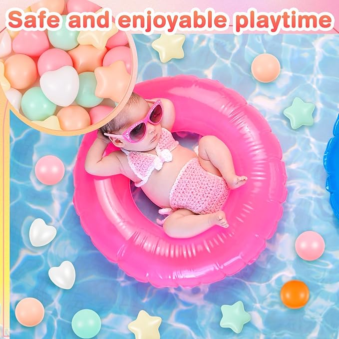 - Aesthetics and Longevity: the plastic balls for pool aren't just colorful, but feature novel star and heart designs; The lovely shapes make them even more appealing to children, and equally sturdy to withstand hours of fun
