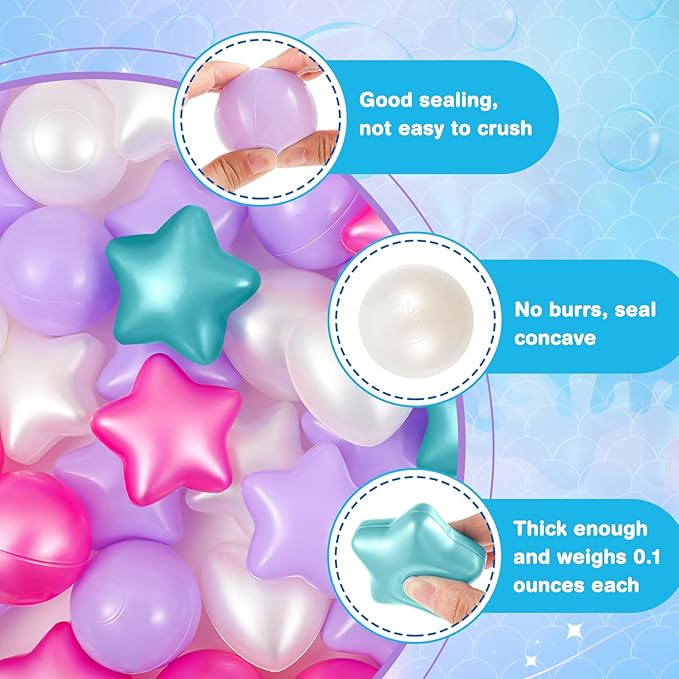 - Funny Party Accessories: embellish your child's birthday party or other special occasions with these star, round and heart shaped ball pool balls; They're suitable for filling up pits, tents, playhouses, kiddie pools, playpens, and bouncy houses; Create an unforgettable event filled with laughter and joy