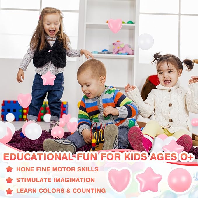 - Funny Party Accessories: embellish your child's birthday party or other special occasions with these star, round and heart shaped ball pool balls; They're suitable for filling up pits, tents, playhouses, kiddie pools, playpens, and bouncy houses; Create an unforgettable event filled with laughter and joy