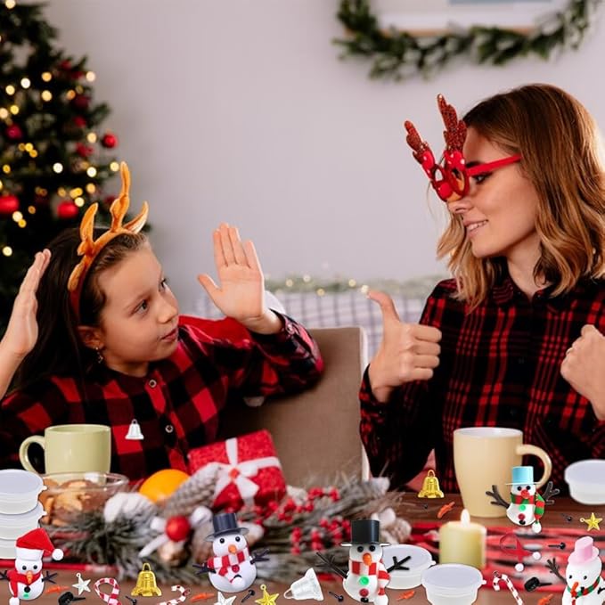 - All in One Pack - These Christmas snowman crafts for kids include 24 cups of white air clay and 240 pcs accessories for decoration (colorful hats and scarfs, eyes, branches arms, carrot noses, characters, pentagrams, buttons, brooms ), one single purchase to get all you need.