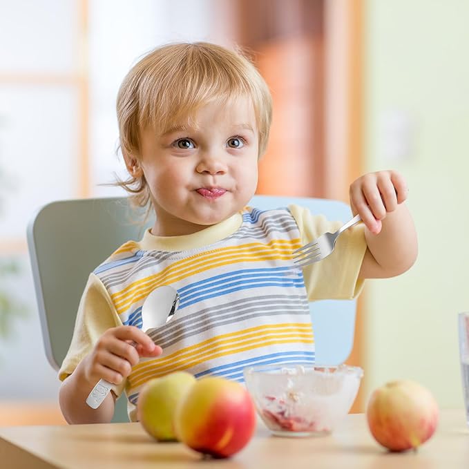 - 【Designed for Little Hands】Fork Size: 5.7inch x 1inch,Spoon Size: 5.7inch x 1.3inch,All the pieces of cutlery is smaller than regular ones, easy to grasp and hold for a child’s hand. They are the perfect size for kids beginning to work with utensils.