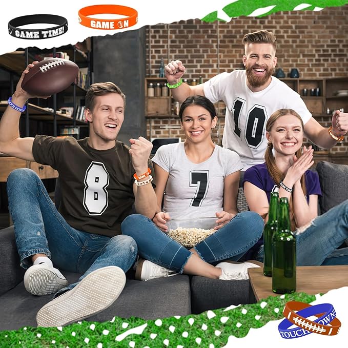 - Football Theme Design: These football bracelets are carefully designed in the football theme, printed with clear football patterns and the words "GO TEAM" and "TOUCH DOWN", and matched with vivid colors, which are interesting and eye-catching, so that you can confidently show your football enthusiasm whether at the game scene or at leisure time