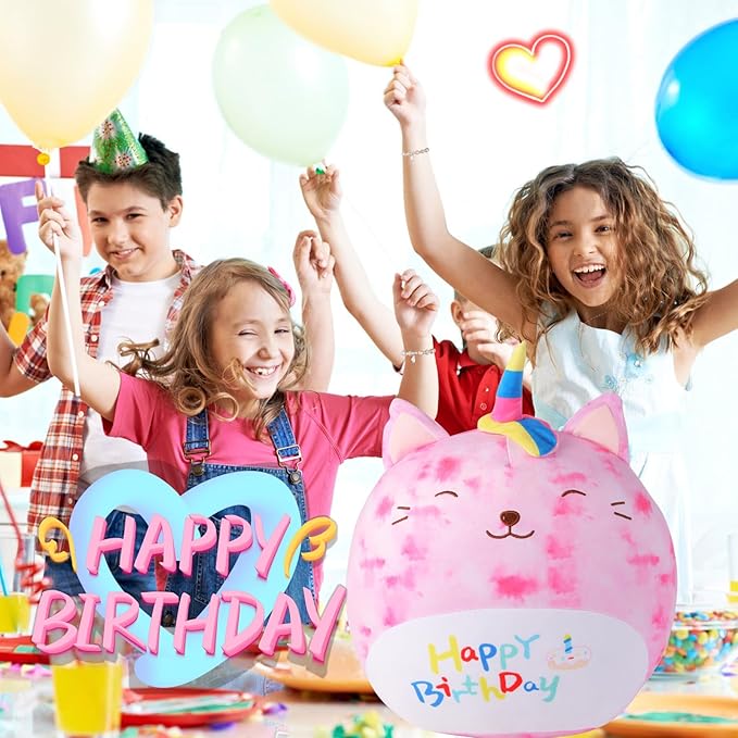- Original and Unique Birthday Design: This birthday unicorn pillow is a one-of-a-kind creation! It features vibrant rainbow colors and a festive birthday hat, with a charming horn and playful color accents that make it instantly eye-catching. The words "HAPPY BIRTHDAY" are embroidered on its belly, adding a joyful touch perfect for a birthday celebration.