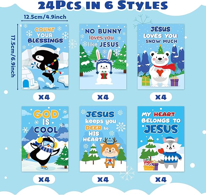 24Pcs Polar Animals Religious Coloring Books - Winter Christian DIY Color-in Pages Booklet Bulk Drawing Activity Party Supplies for Sunday School Classroom Rewards Artwork Gift for Kids