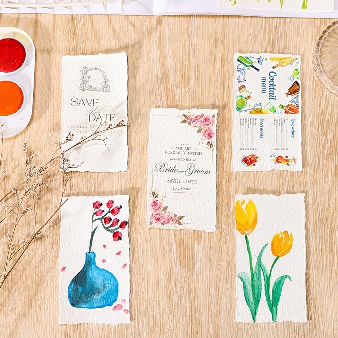 - 【Craft Decoration】Cotton watercolor paper can also be given as a gift to people who like to draw, such as children, students, artists, etc., which can stimulate their creativity and imagination and show their painting talent. You can also make collages, watercolors and retro paintings style invitation.