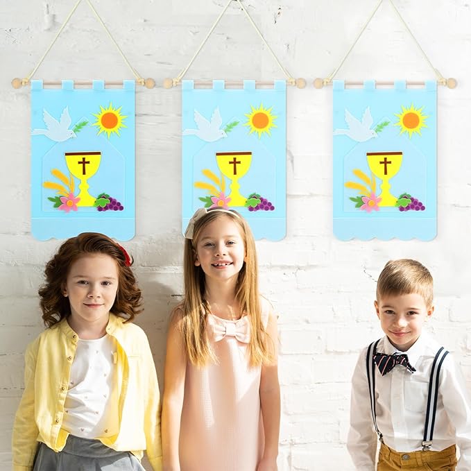 - Quality Material and Ample Content: enjoy a wholesome and enriching craft experience with our 1st communion banner kit made with quality felt material that delivers a comfortable and durable user experience; The package includes 12 first communion banner kits offering you an abundant supply for multiple uses