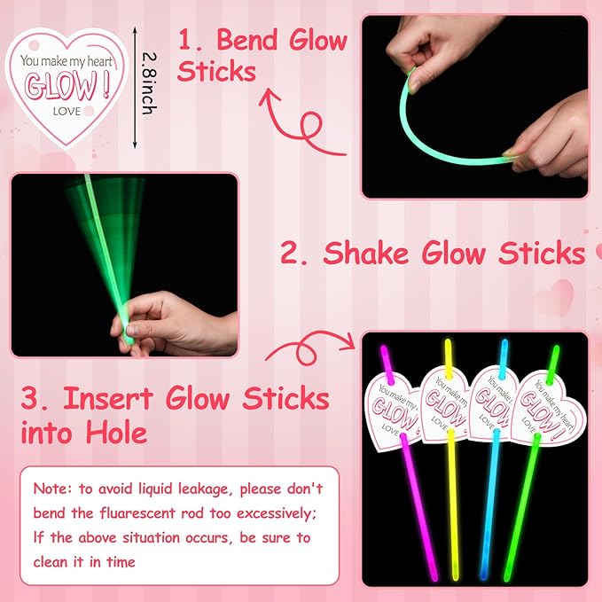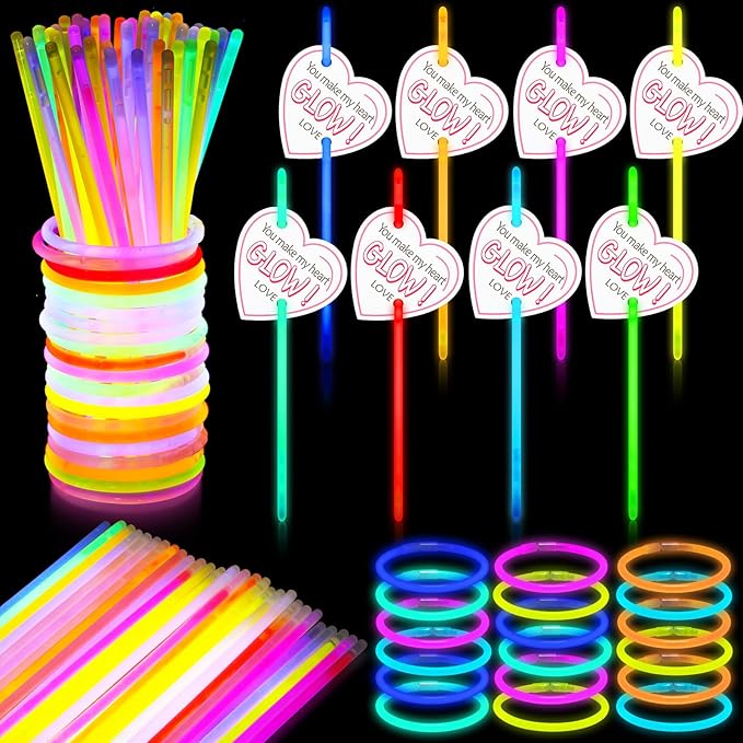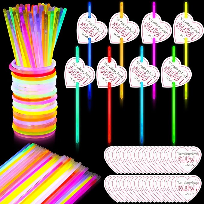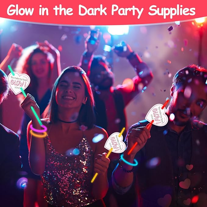 - Glow in the Dark Party Supplies: these glow sticks are suitable for various events such as Valentine's day party, glow in the dark themed parties, neon themed parties, birthday parties, concerts, dances, etc., as party favors or decorations; The combination of cards and glow sticks is also very suitable for gifting, as a thank you gift for family, friends, employees, or colleagues