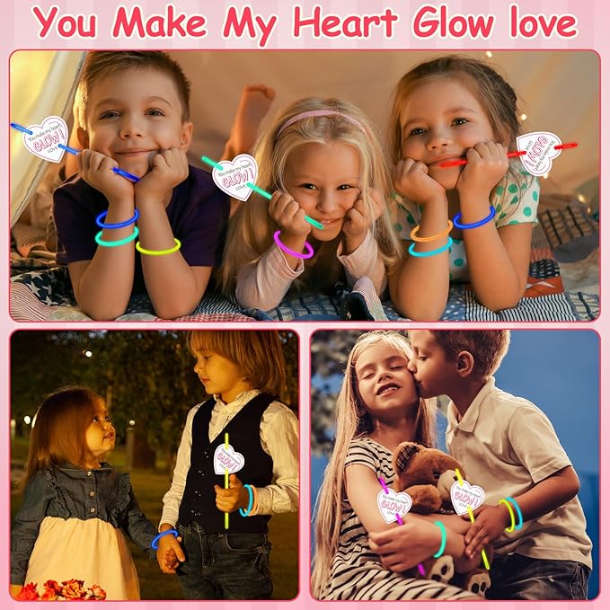 - Valentine's Day Prizes: the love card features the phrase [You make my heart glow], with a classic heart pattern, bright color, vibrant, and charming design that adds joy for the Valentine's day; Just thread the glow stick through the 2 cuts of the card, easy to apply, won't damage the shape of star card or block phrases