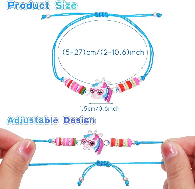 - Premium Adjustable Bracelets: Made of premium alloy material, ensuring that each bracelet is lightweight, reliable and long-lasting. The size of the girls bracelet is adjustable, which is suitable for most girls' wrists and can be worn for a long time and easily take off. Girls can enjoy the princess unicorn party without worries