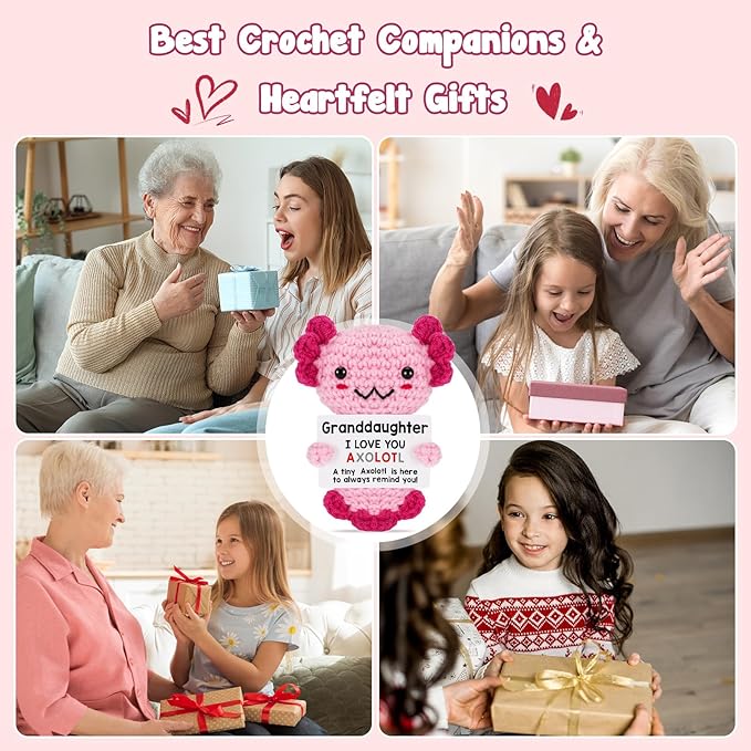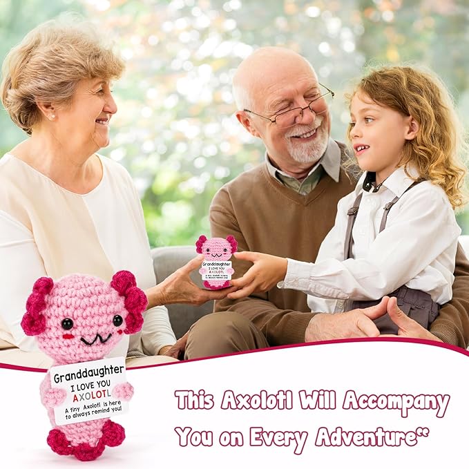 - Gifts for Great Granddaughter: Accompanied by a heartfelt message, this crochet axolotl provides emotional support and encouragement, reminding your granddaughter that she’s always loved and supported by her grandparents.