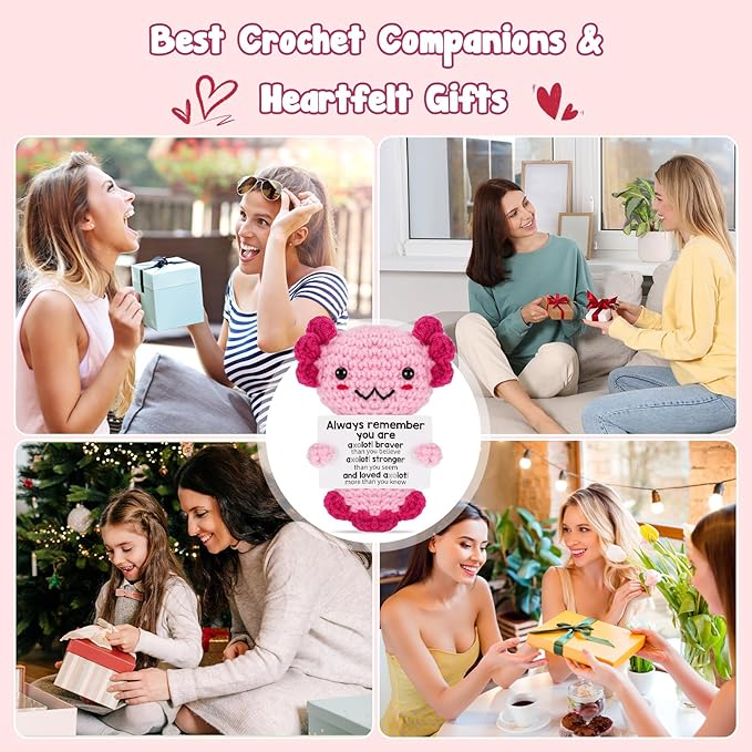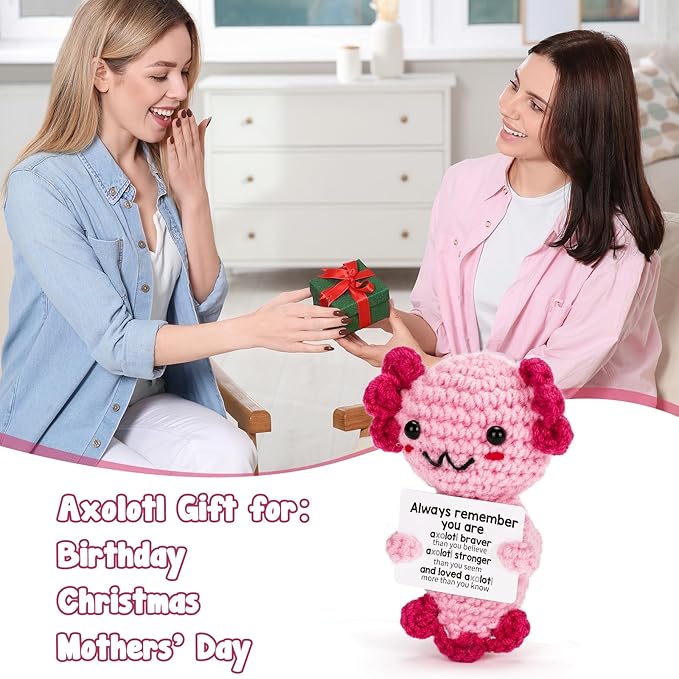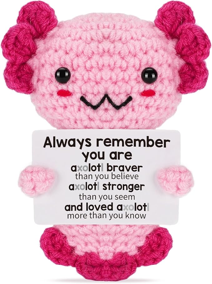 Positive Crochet Animal Axolotl, Handmade Emotional Supporting Plush Gifts for Women Girls Teens Friends, Birthday Christmas Stocking Stuffers Toy Gift Under 10 Dollars, Motivational Encouragement