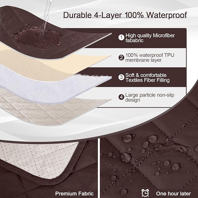 KinCam 100% Waterproof Recliner Chair Cover, Reclining Couch Covers for Pets, Dogs, Recliner Couch Slipcover Furniture Protector with Elastic Straps for Kids(30", Coffee)
