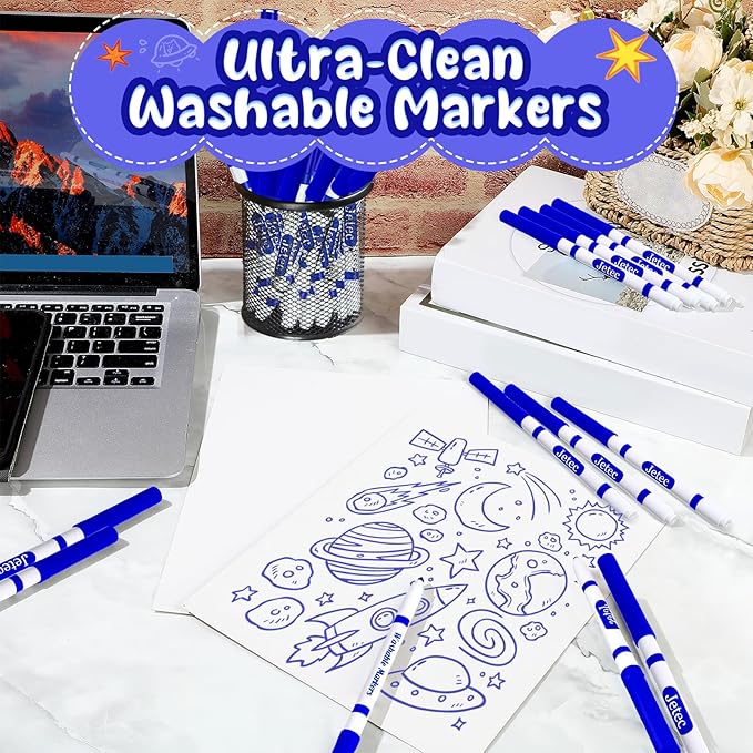- Art and School Supplies: blue washable markers are good for art projects, homework, school projects, classroom activities, handicrafts, art parties, etc.; Line washable markers can also be given as birthday or holiday gifts to children, or donated to others in need