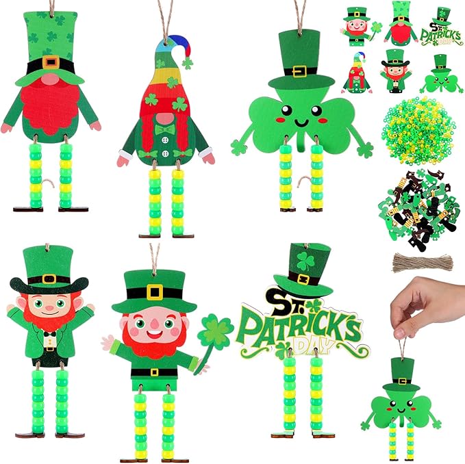 - Wood Ornaments: the package comes with 24 sets of Easter sign crafts that need your DIY assembly, including 24 pcs of wooden ornaments in 6 styles, 150 pink beads, 150 blue beads, 150 yellow beads, 50 white beads, 75 hemp ropes, 1 instruction