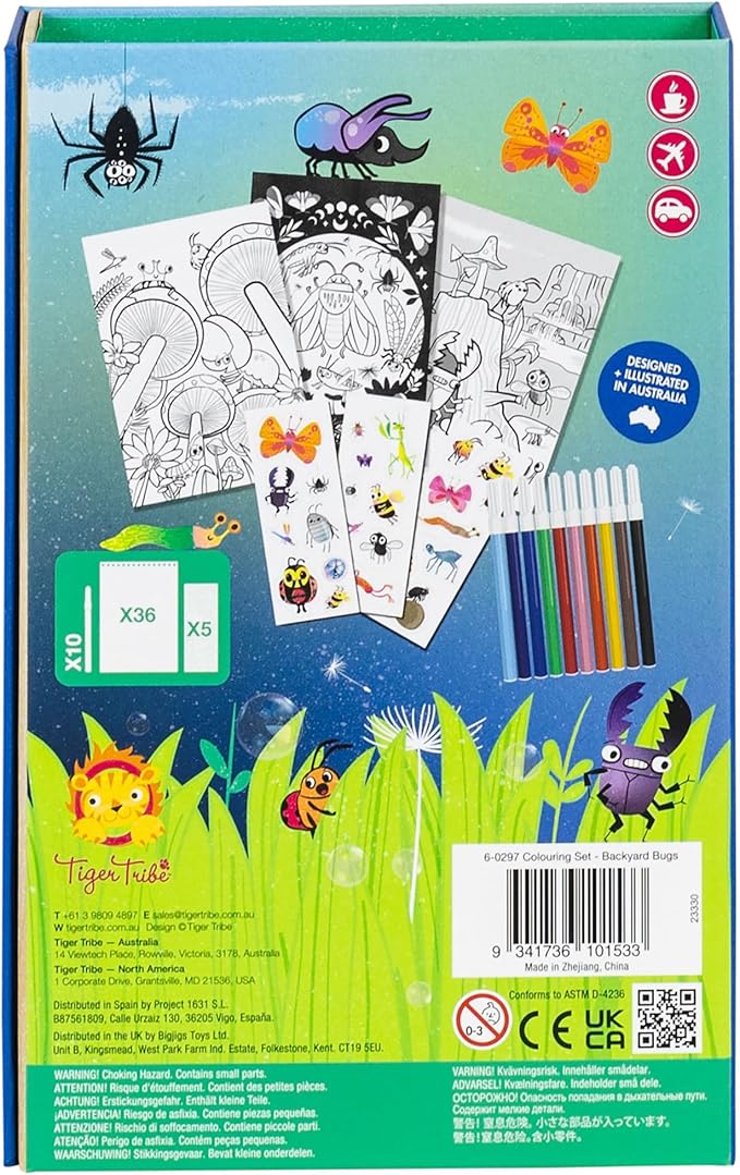 - BACKYARD BUGS THEMED COLORING SET: These beautifully illustrated coloring sets are jam-packed with coloring pages and markers. All designed to keep kids happy on the go. Create vivid masterpieces.