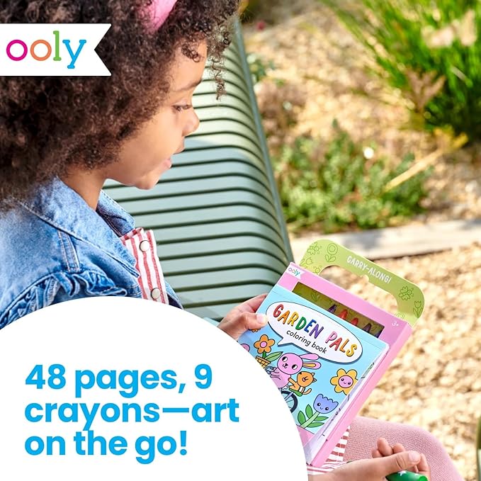 Ooly Travel Art Kit with 9 Jumbo Crayons, 48 Themed Coloring Pages & Case for Easy Traveling Art Creation, Perfect Airplane Travel Set to Entertain Kids - Garden Pals