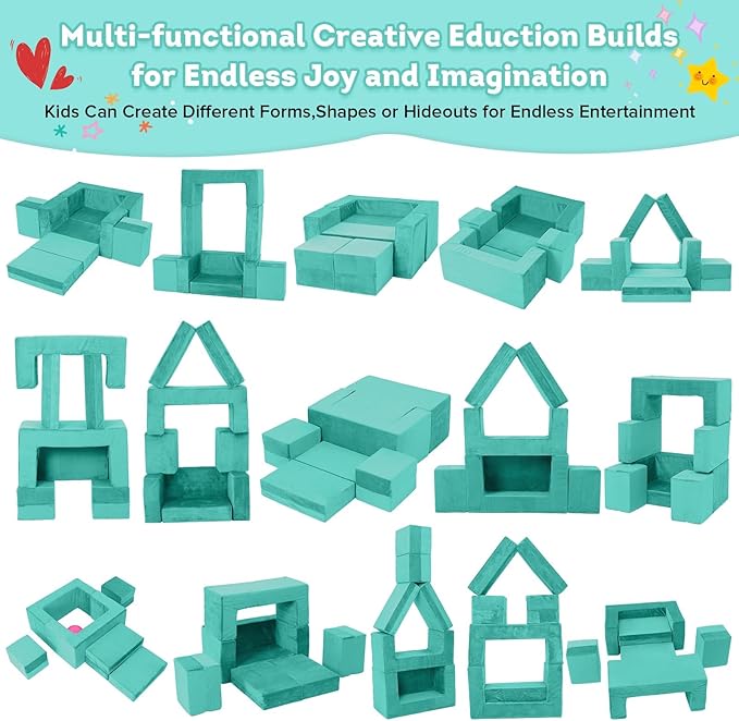 - Stimulate Imagination & Creativity: Enjoying the kid couch sofa converting different functions.This modular sectional sofa is an excellent puzzle game that promotes hands-on, interactive learning, Improve imagination, creativity abilities, logical thinking skills and reduces screen time! This modular sofa is versatile and fun. It is a great choice for playrooms, bedrooms, children's rooms, nurseries, etc.